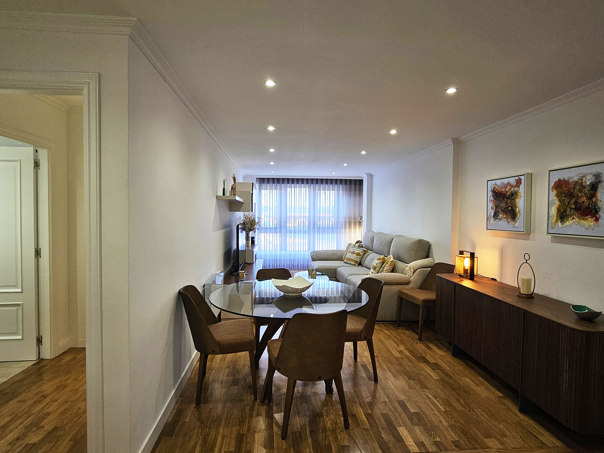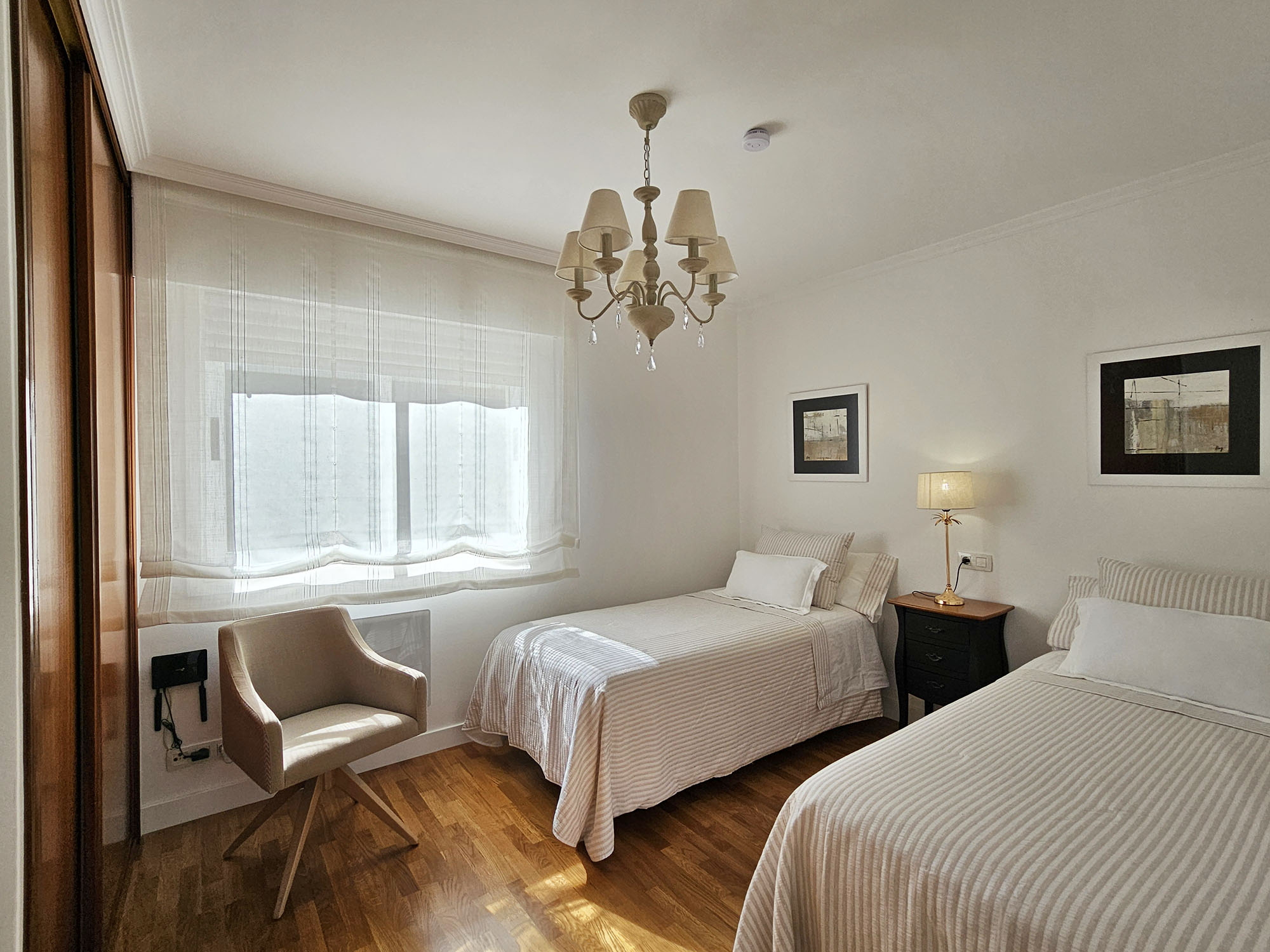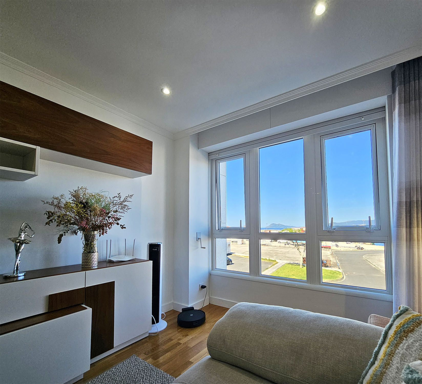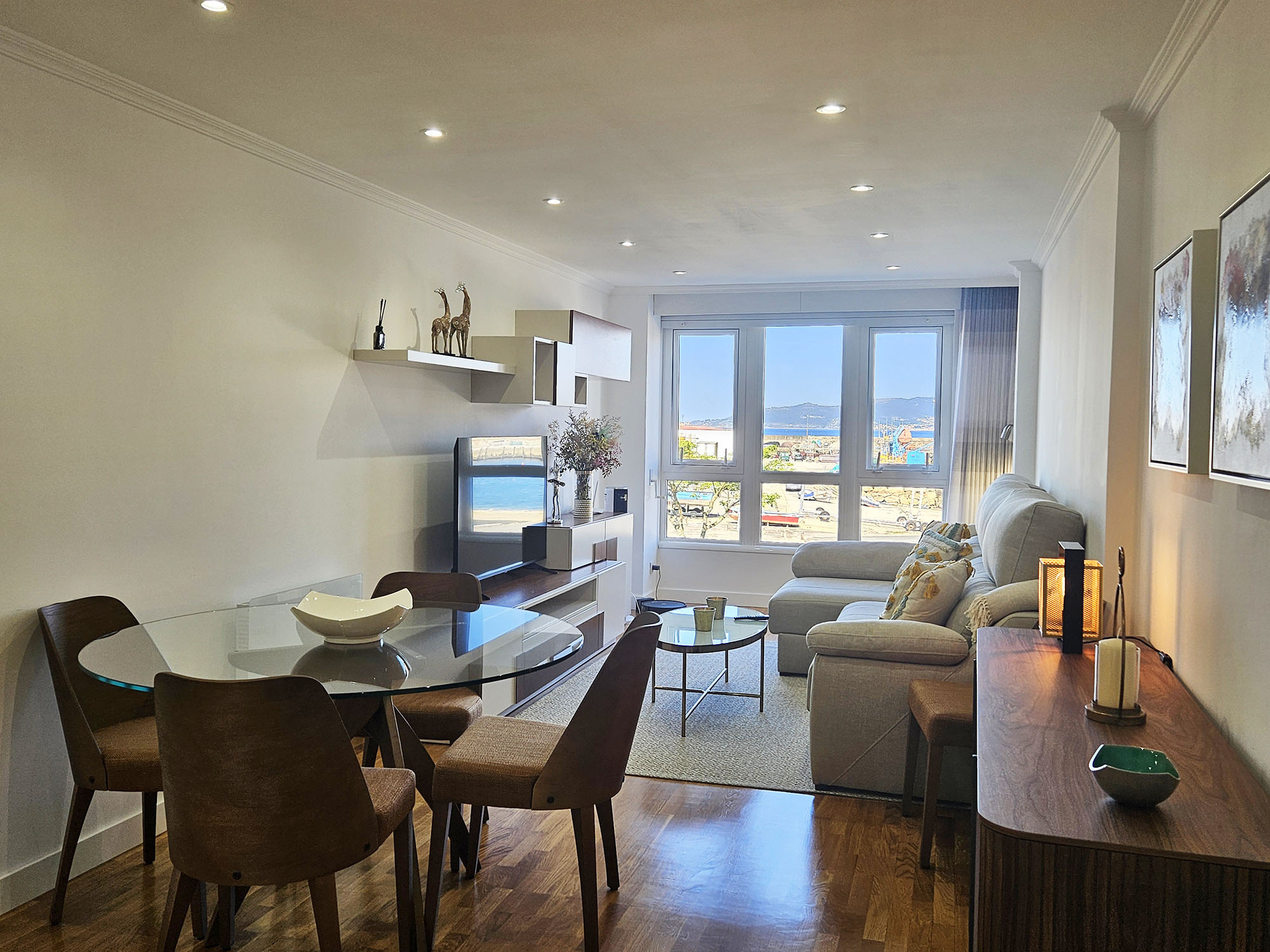 Apartamento frente al puerto de Portosín con vistas a la ría de Muros y Noia, con Monte Louro al fondo regalando unos atardeceres de ensueño. Portosín es un pueblo pesquero con el puerto de cerco más importante de la península ibérica. No falta en su lonja la sardina, el jurel y la caballa (Azul de Portosín). Gracias a su excelente ubicación en la ría y a su proximidad a Santiago de Compostela, se ha consolidado el Real Club Náutico de Portosín. Refugio de barcos de todas las nacionalidades. En invierno, Portosín cuenta con una población muy pequeña y la tranquilidad es absoluta. Ideal para descansar y desconectar. En verano Portosín se llena de veraneantes y el ambiente es de fiesta y diversión, sin estropear la tranquilidad de este lugar ideal para disfrutar con la familia. Playa, terrazas, restaurantes y prácticamente todos los servicios que puedas necesitar muy cerca del apartamento, sin necesidad de coger el coche. Cuenta con tres dormitorios, dos con cama doble y el otro con dos sencillas, una cocina y un amplio salón con vistas a la ría. Es un primero con ascensor, aunque el portal tiene un tramo de escaleras hasta llegar al ascensor. Cuenta con plaza da garaje y wifi